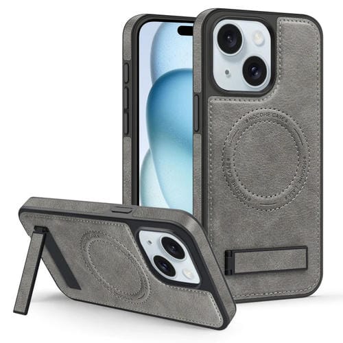 Funda para Teléfono iPhone 15 Magsafe Pu con Soporte Multifunción (Gris)