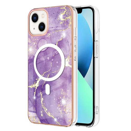 Funda para iPhone 15 Imd Magsafe TPU Doble Cara Patrón Mármol (Púrpura)