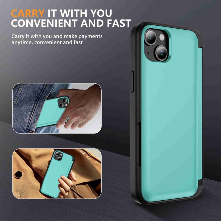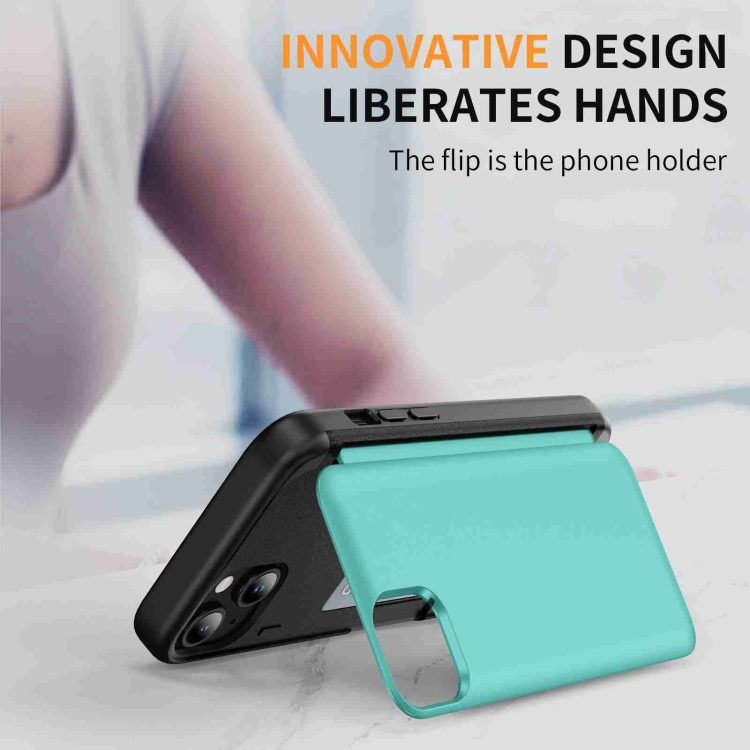 Funda para Teléfono iPhone 15 Plus 3 En 1 con Soporte Abatible (Cian)