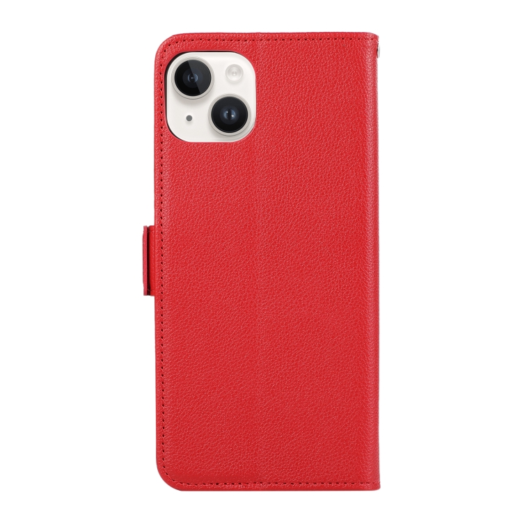 Funda para Teléfono Abeel iPhone 15 Plus RFID Cuero Patrón Litchi Magnético Lateral (Rojo)