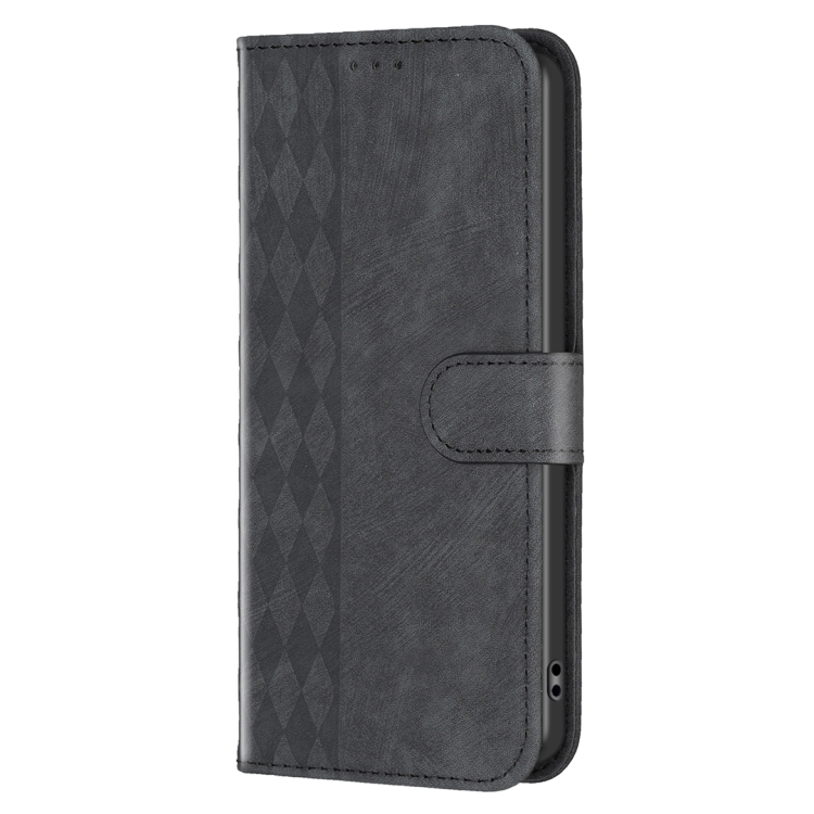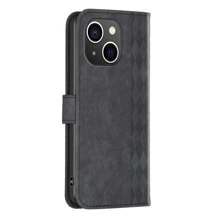 Estuche para Teléfono iPhone 15 Plus Cuero En Relieve a Cuadros (Negro)