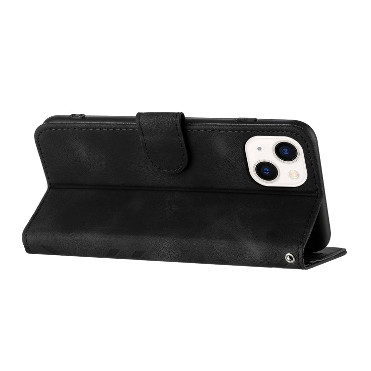 Funda para iPhone 15 Plus Cuero Sensación de Piel Patrón de Líneas (Negro)