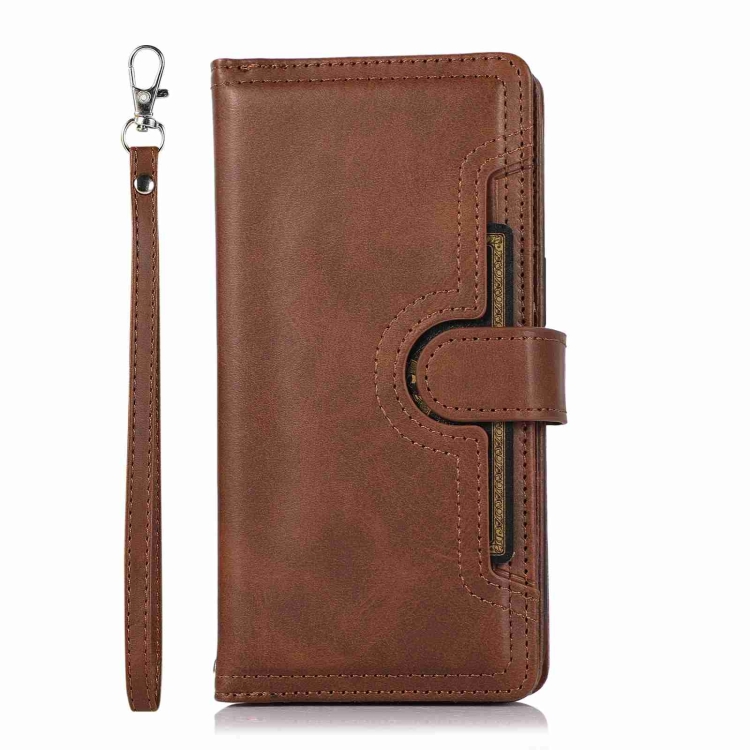 Funda para Teléfono iPhone 15 Plus Cuero Ranura para Tarjeta y Pulsera (Café)