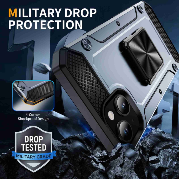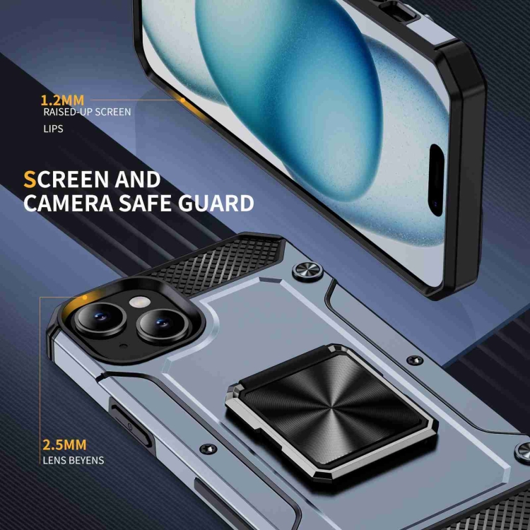 Funda para Teléfono iPhone 15 Plus con Soporte de Metal a Prueba de Golpes (Gris)