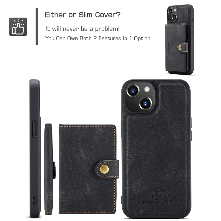 Funda de Teléfono Jeehood para iPhone 15 Plus Cuero Desmontable Magnética Retro (Negro)