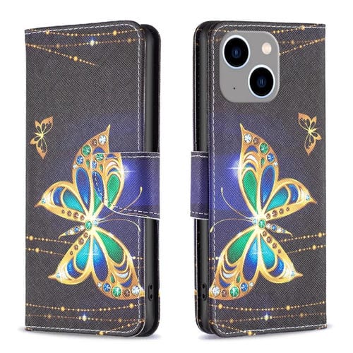 Funda de Cuero para iPhone 15 Plus Flip con Patrón de Dibujo Mariposa Grande