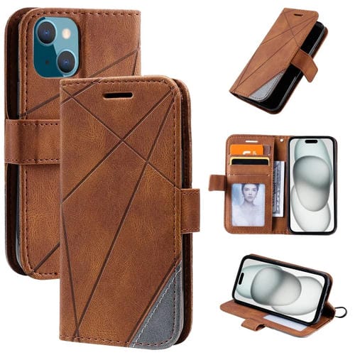 Funda para Teléfono iPhone 15 Plus Skin Feel Empalme Cuero (Marrón)