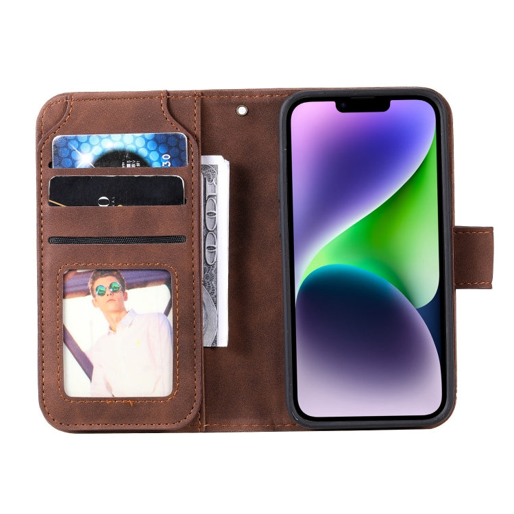 Funda para iPhone 15 Plus Skin Feel Cuero con Billetera y Múltiples Tarjetas (Marrón)