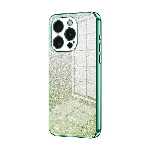 Estuche para Teléfono iPhone 15 Pro Galvanizado con Polvo de Brillo Degradado (Verde)