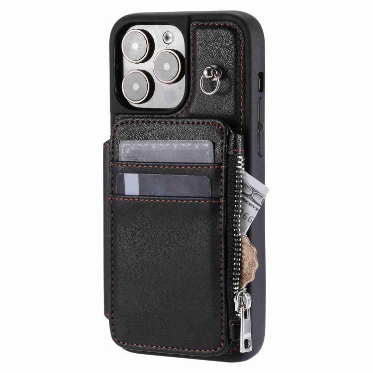 Estuche para Teléfono iPhone 15 Pro Rfid con Ranuras para Tarjetas con Cremallera (Negro)