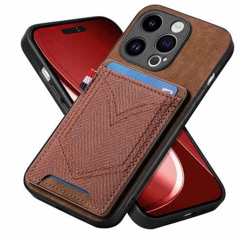 Funda para Teléfono iPhone 15 Pro Max Denim Texture Leather Skin con Ranura para Tarjeta (Marrón)