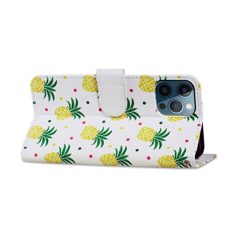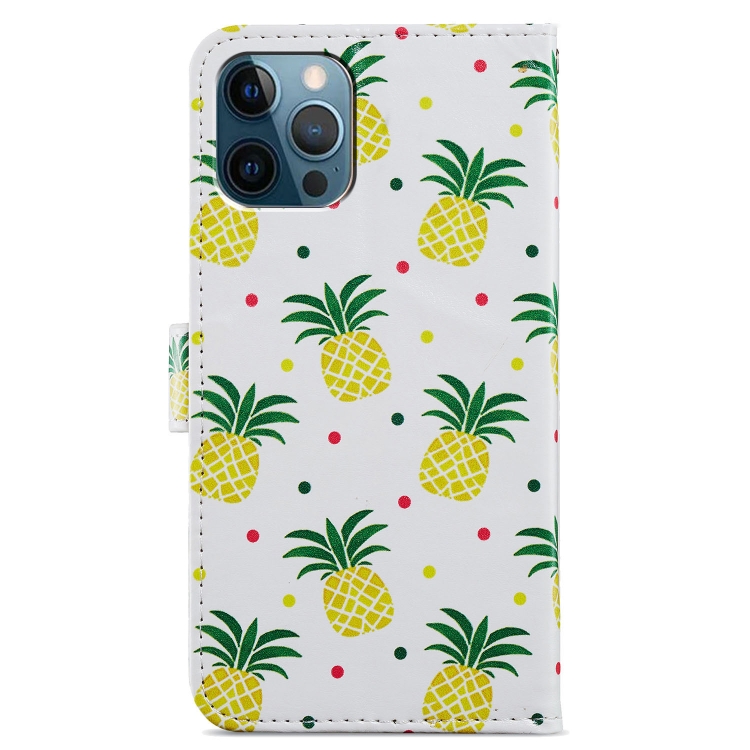 Estuche para Teléfono iPhone 15 Pro Max Cuero con Dibujo Coloreado (Piña)