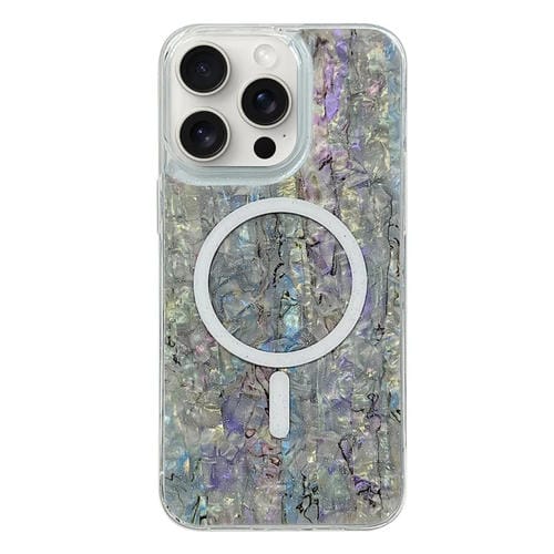 Funda para teléfono iPhone 15 Pro Max Shell Texture Multicolor Magsafe TPU (Gris Plateado)