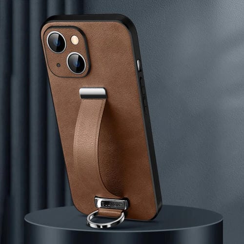 Funda para teléfono Sulada Tide Cool Series para iPhone 15 PC con textura de cuero y sensación de piel (Marrón)