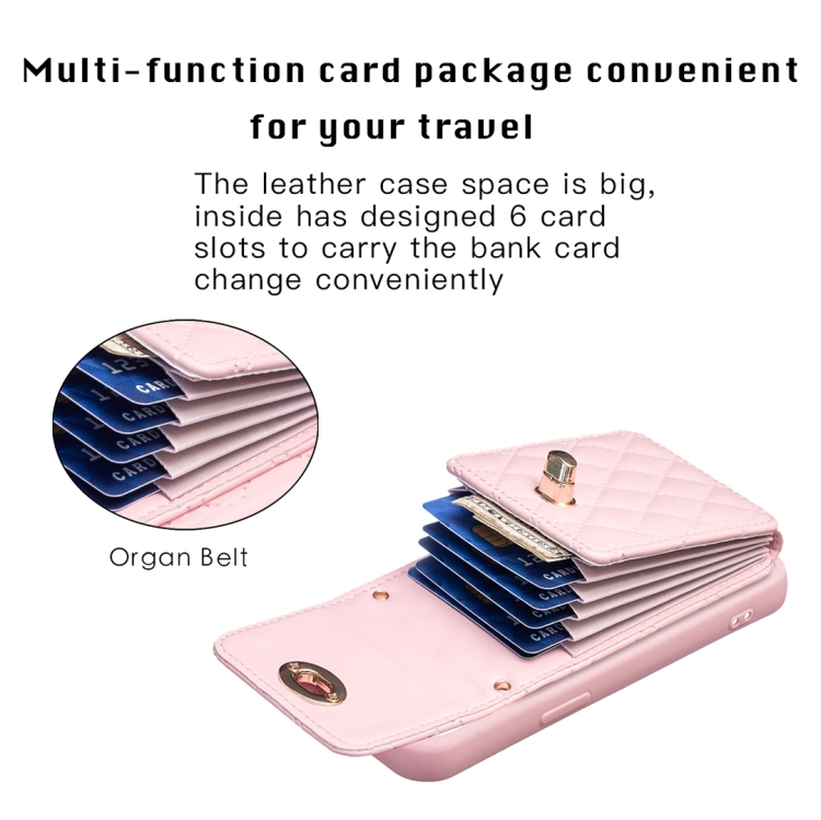Funda Vertical Wallet para iPhone 15 Rhombic Leather Phone Case (Rosa)