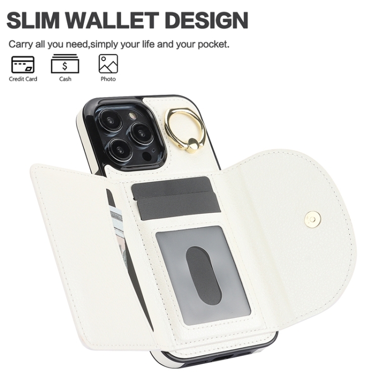 Estuche para Teléfono Ym006 para iPhone 15 con Soporte para Anillo y Tarjeta (Blanco)
