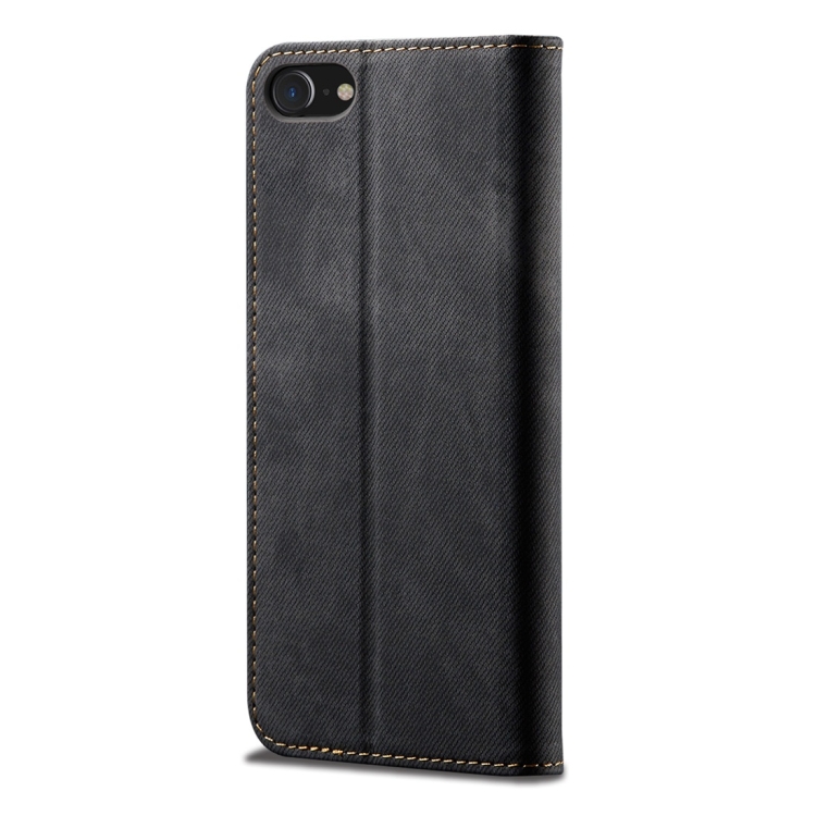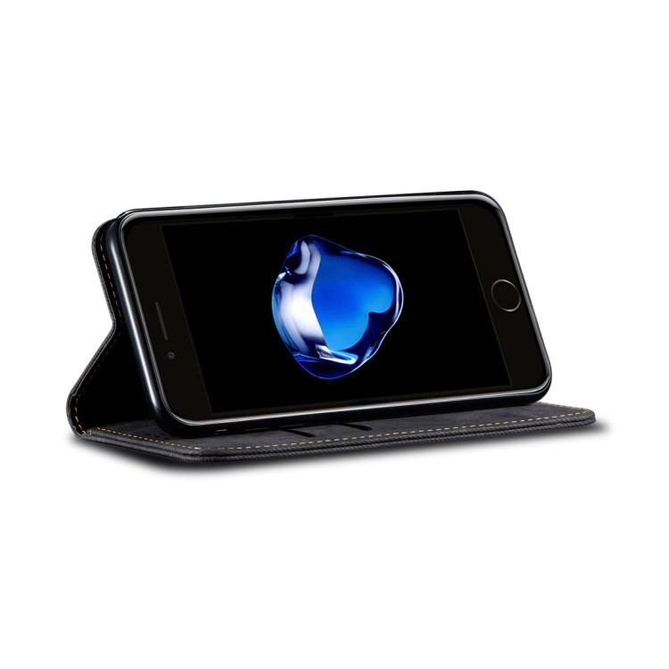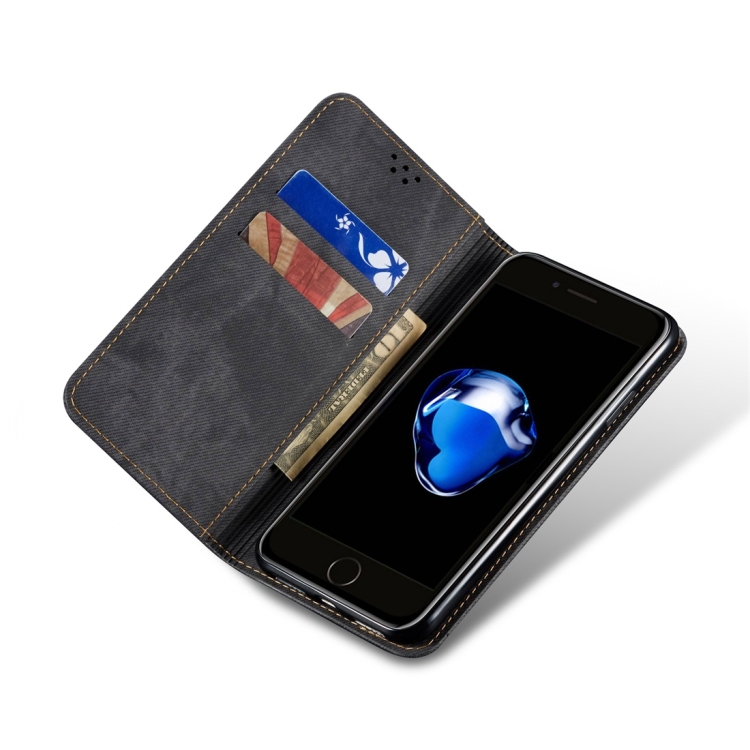 Funda de Cuero para iPhone 6 / 6S con Tapa Horizontal, Textura de Mezclilla, Soporte, Ranuras para Tarjetas y Billetera (Negro)