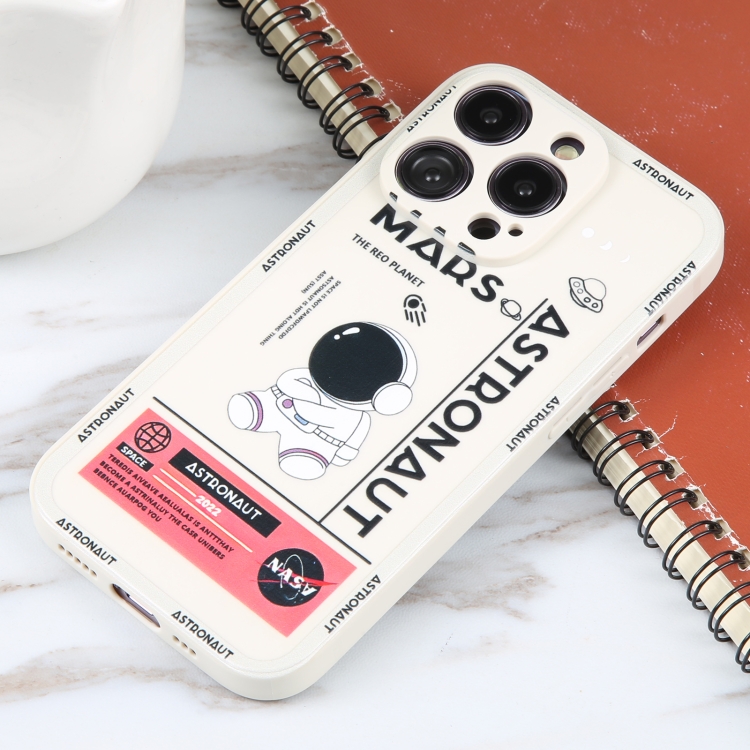 Funda de teléfono iPhone 6 6S Silicona Borde Recto Patrón Astronauta de Marte (Blanco)