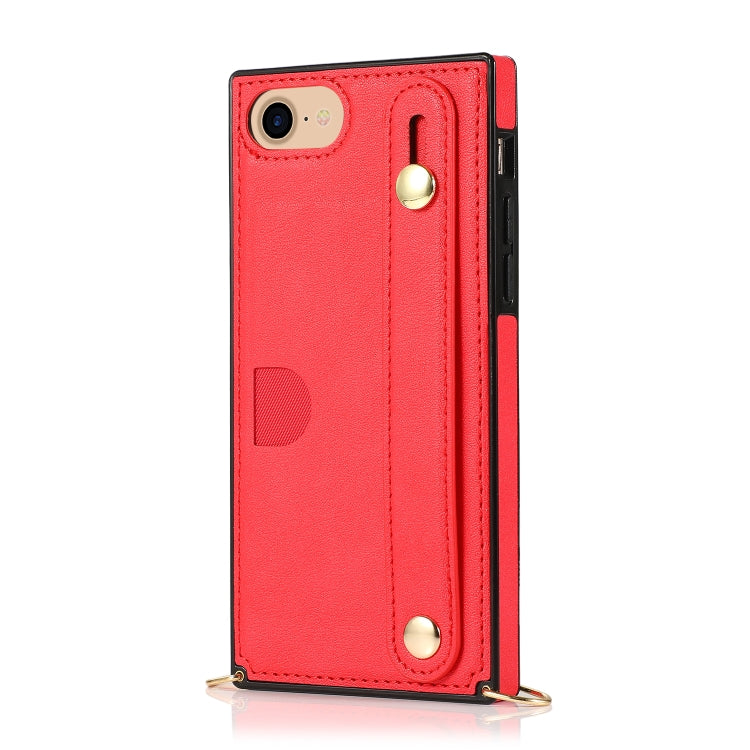 Correa de Muñeca Pu + Funda TPU para iPhone 6 a Prueba de Golpes con Cordón, Soporte y Ranura para Tarjeta (Rojo)