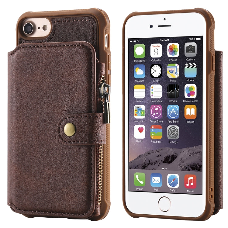 Estuche Protector para iPhone 6 con Cremallera Ranuras Tarjetas Soporte Fotos Billetera (Café)