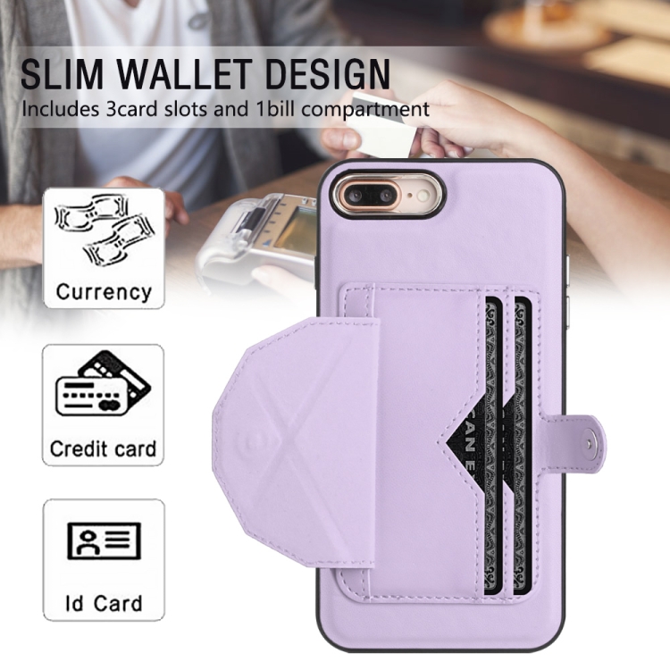 Estuche de Teléfono iPhone 6 Plus/7 Plus/8 Plus Cuero a Prueba de Golpes con Tarjetero (Púrpura)
