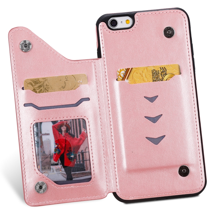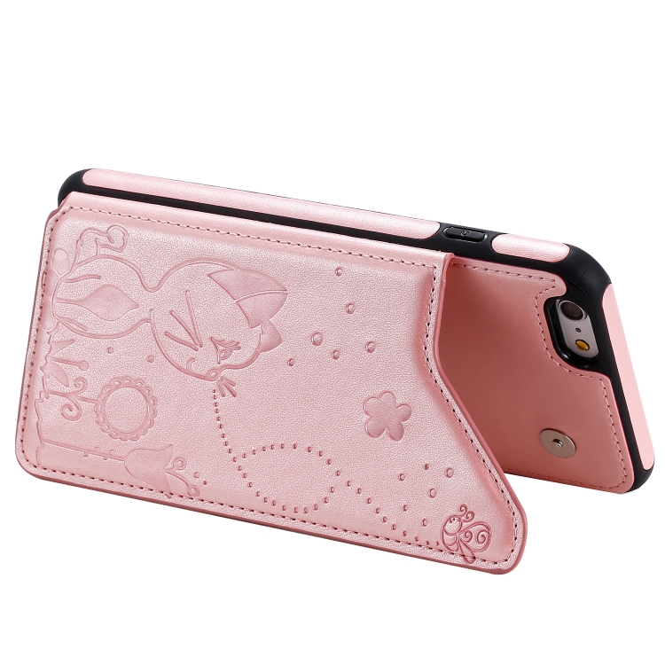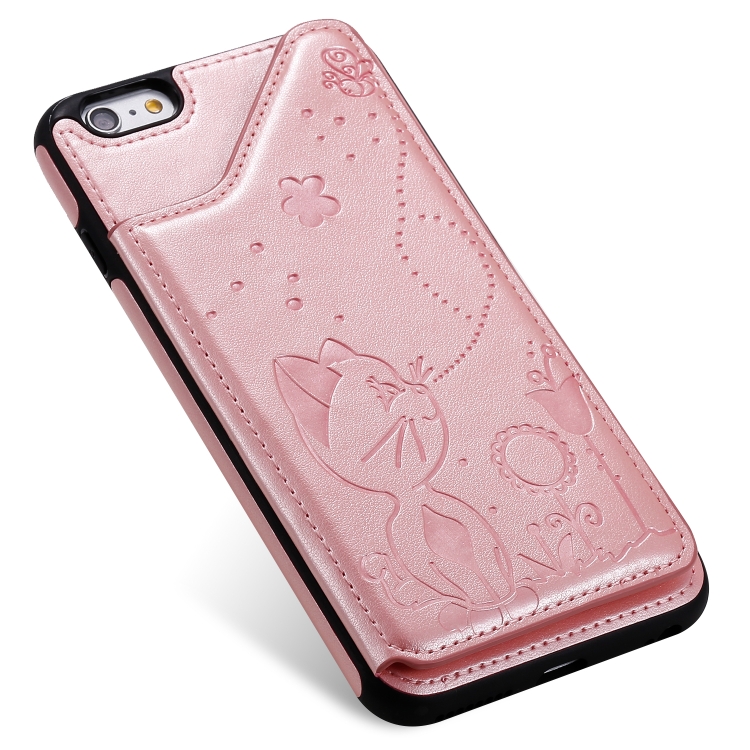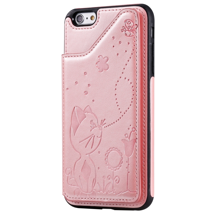 Estuche protector para iPhone 6 Plus Cat Bee patrón en relieve con ranuras para tarjetas y marco de fotos (Oro Rosa)