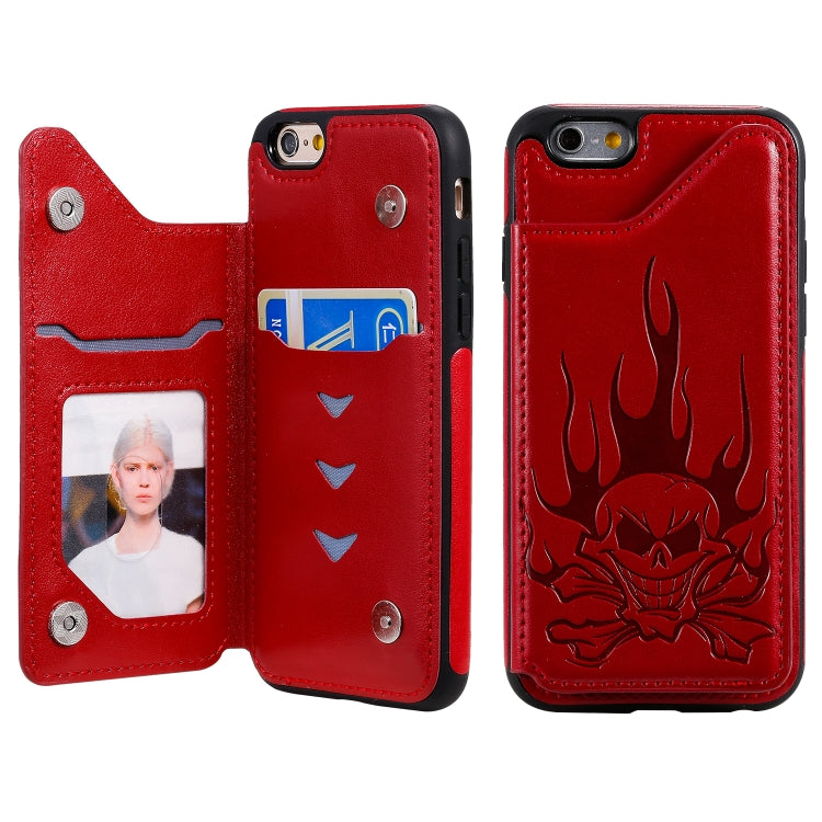 Funda Protectora iPhone 6S / 6 Estampado Cabeza de Calavera con Soporte y Billetera (Rojo)