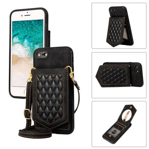 Funda para iPhone 6S Plus y 6 Plus Rhombic Texture Rfid con Cordón y Espejo (Negro)