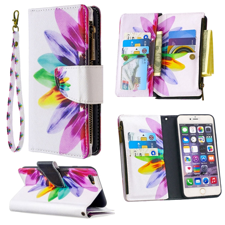 Funda de Cuero para iPhone 6S Plus y 6 Plus con Patrón de Dibujo, Cremallera, Tapa Horizontal, Soporte y Ranuras para Tarjetas (Sun Flower)