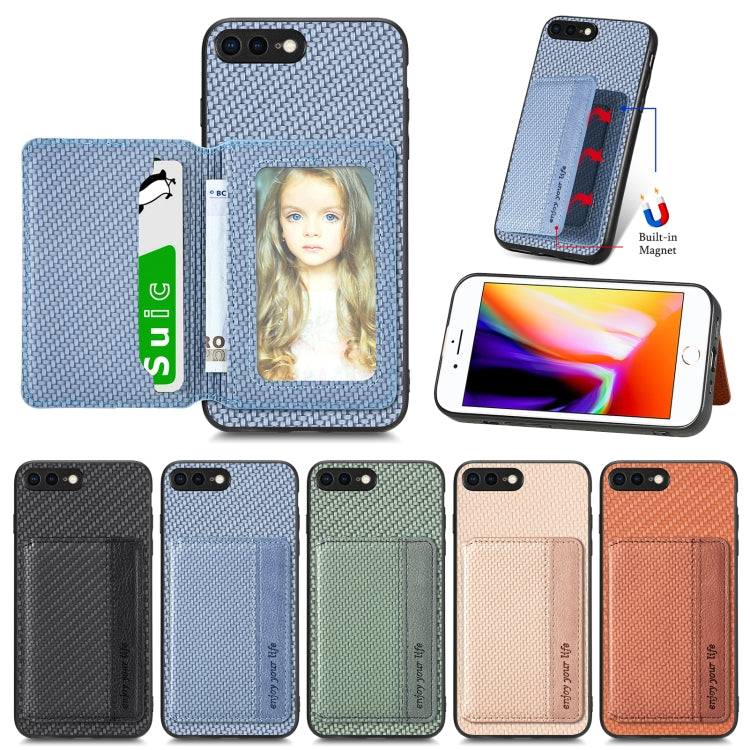 Caja de Teléfono para iPhone 7 Plus 8 Plus con Bolsa de Tarjeta Magnética Fibra de Carbono (Marrón)
