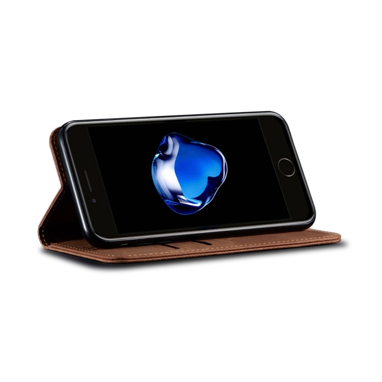 Funda para iPhone 7 Plus 8 Plus Cuero Tapa Horizontal Textura Mezclilla Soporte Ranuras Tarjetas Billetera (Marrón)