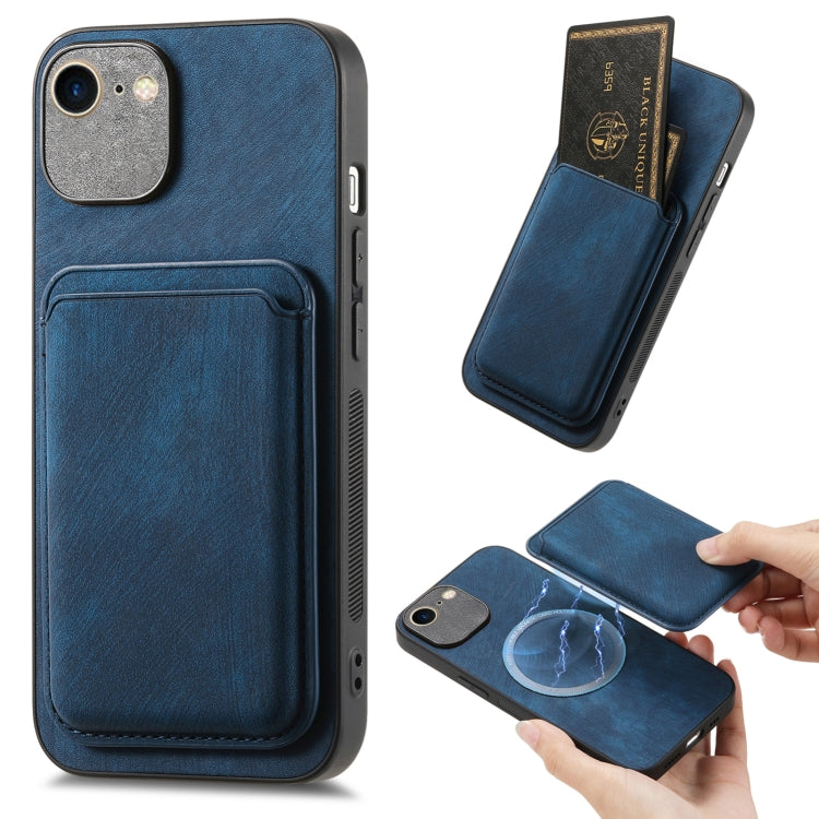 Funda de Teléfono para iPhone 7 Plus/8 Plus Magnética con Bolsa de Tarjeta de Cuero Retro (Azul)