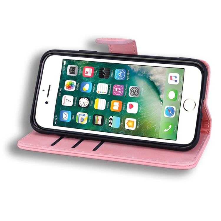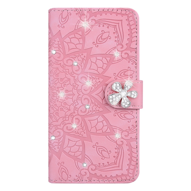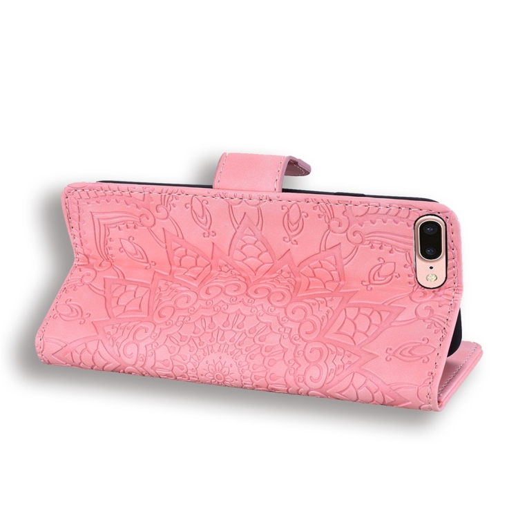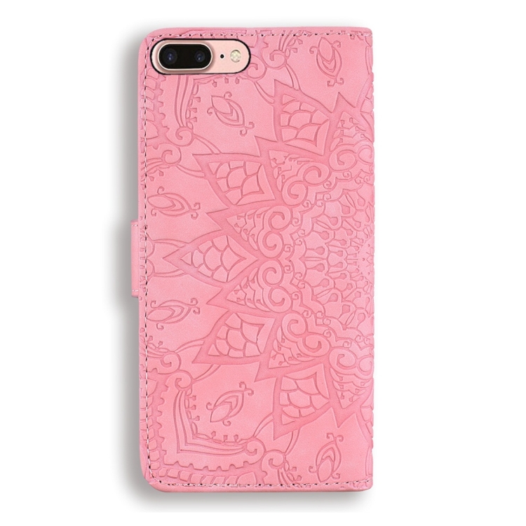 Funda para iPhone 7 Plus 8 Plus Cuero En Relieve Patrón Diamante Mandala Plegable Doble Billetera Soporte Ranuras para Tarjetas (Rosa)