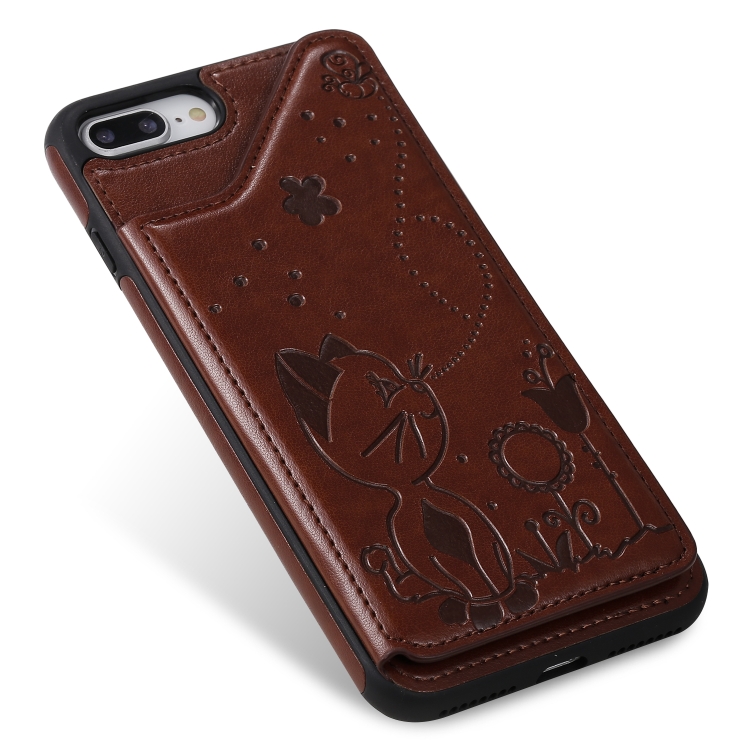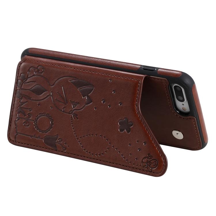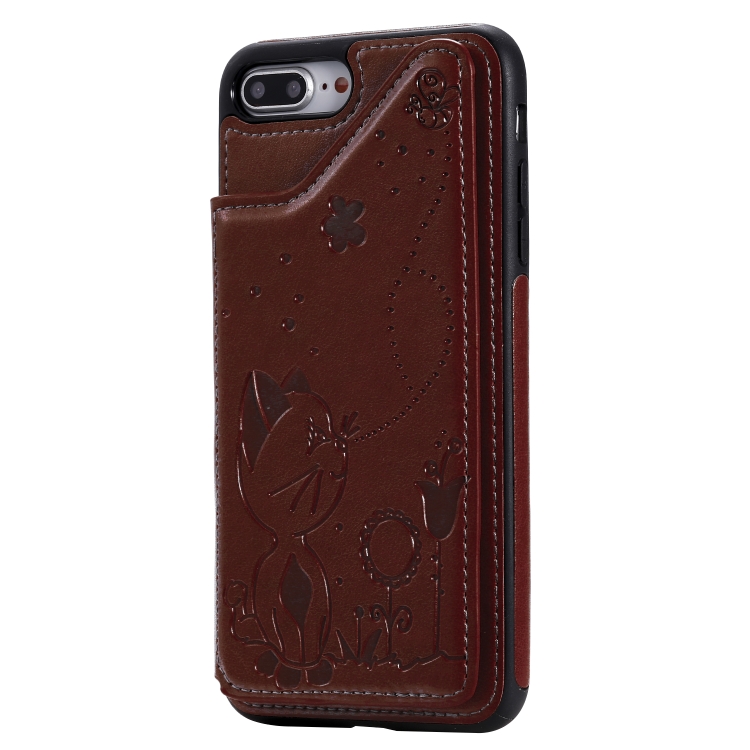 Estuche Protector Cat Bee para iPhone 8 Plus y 7 Plus a Prueba de Golpes con Ranuras para Tarjetas y Marco de Fotos (Marrón)