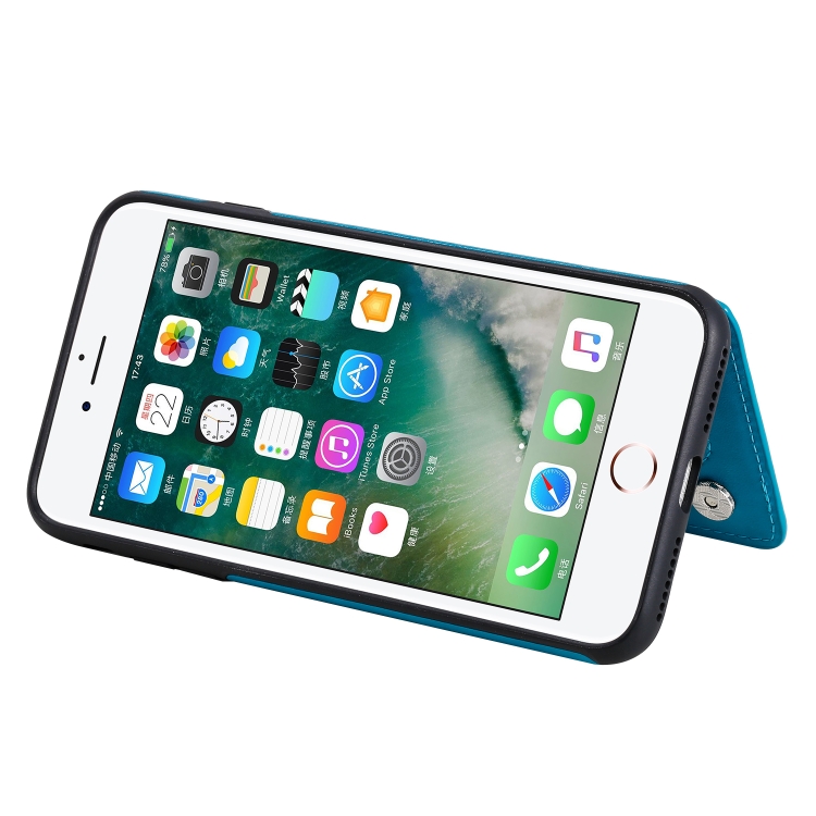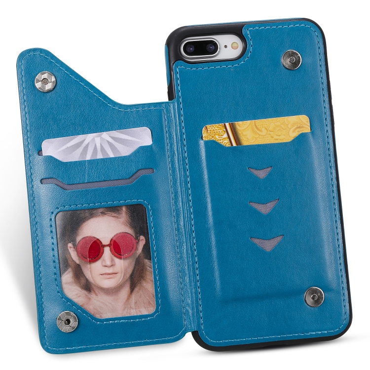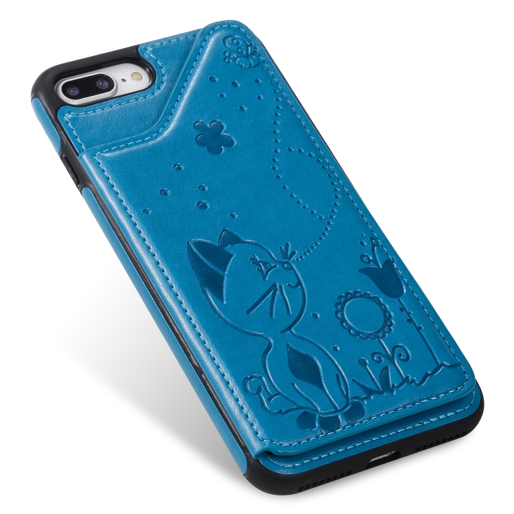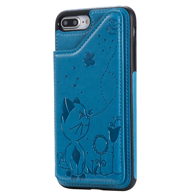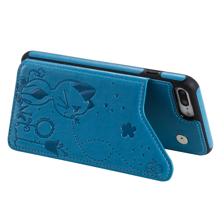 Estuche protector para iPhone 8 Plus 7 Plus Cat Bee Patrón en Relieve con Ranuras para Tarjetas y Marco de Fotos (Azul)