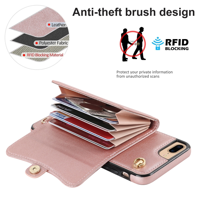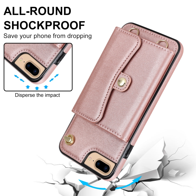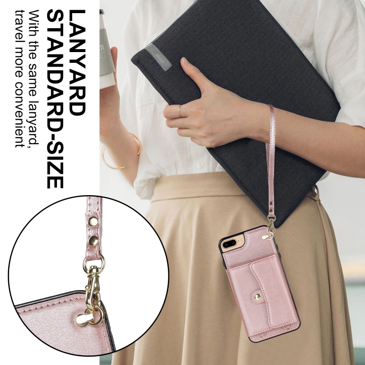Estuche para Teléfono iPhone 8 Plus 7 Plus con Ranura para Tarjeta RFID y Cordón Largo (Oro Rosa)