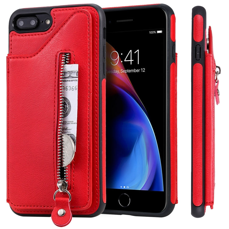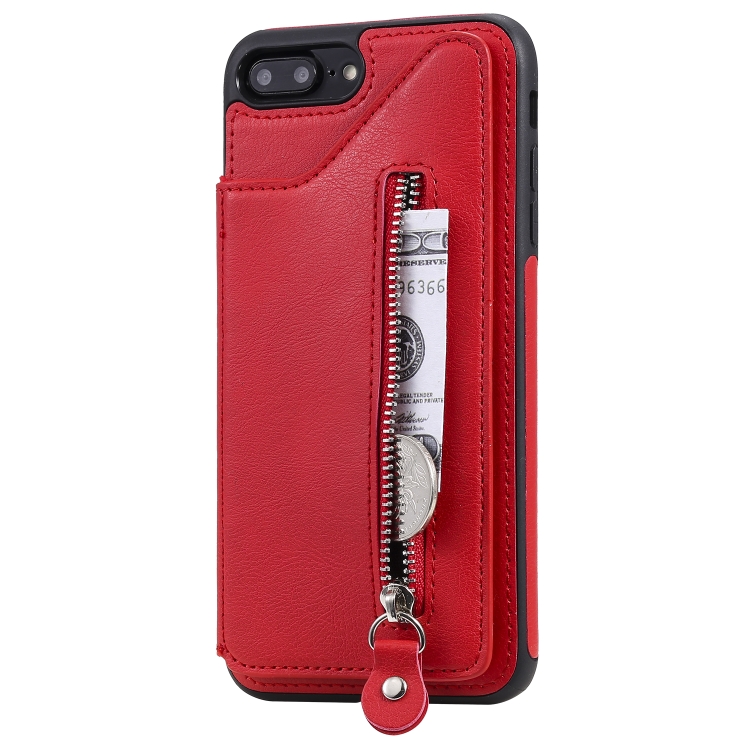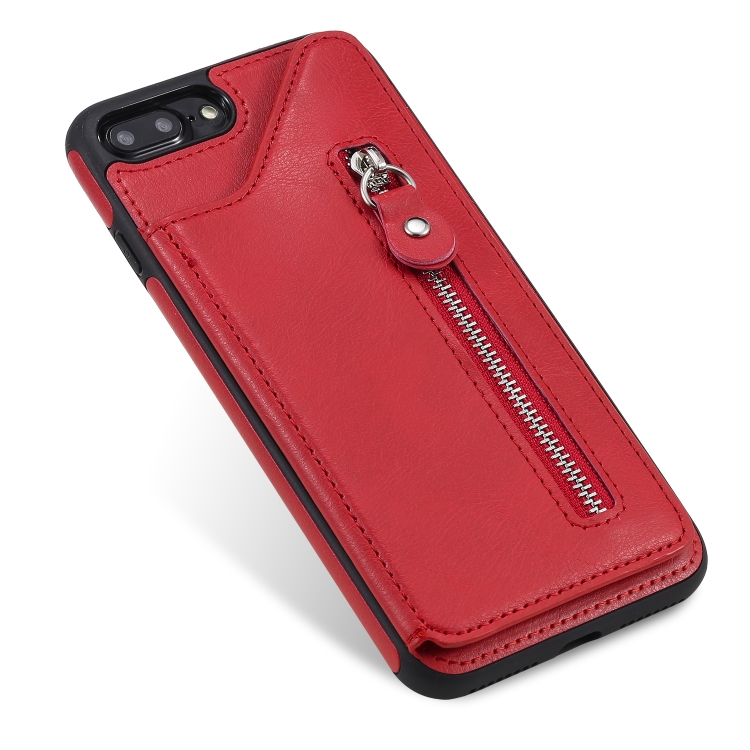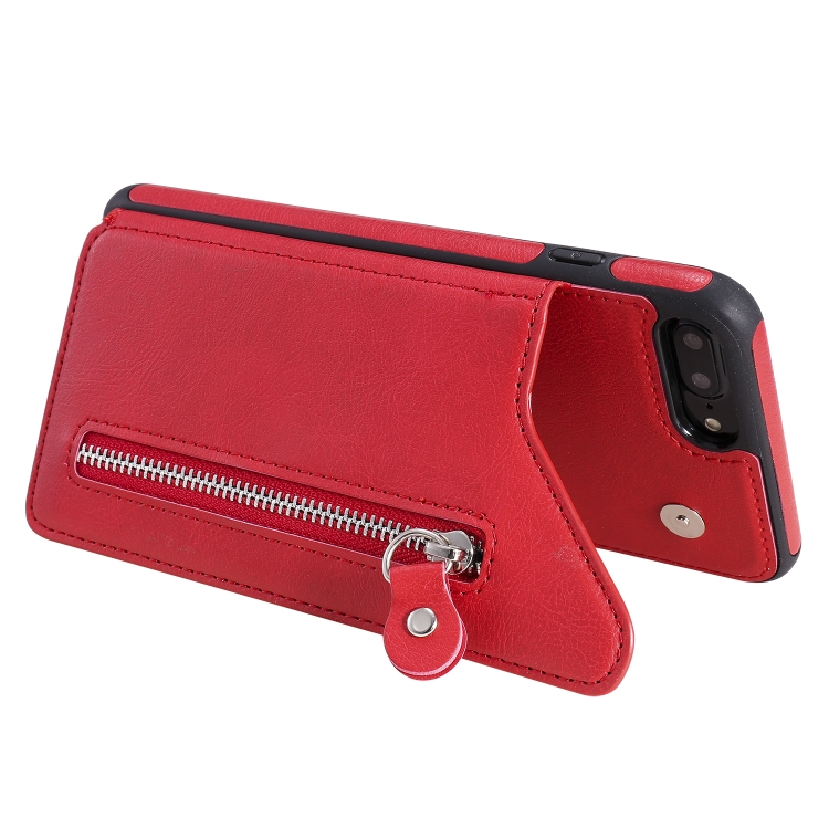 Estuche protector para iPhone 8 Plus y 7 Plus a prueba de golpes con cremallera y doble hebilla (Rojo)