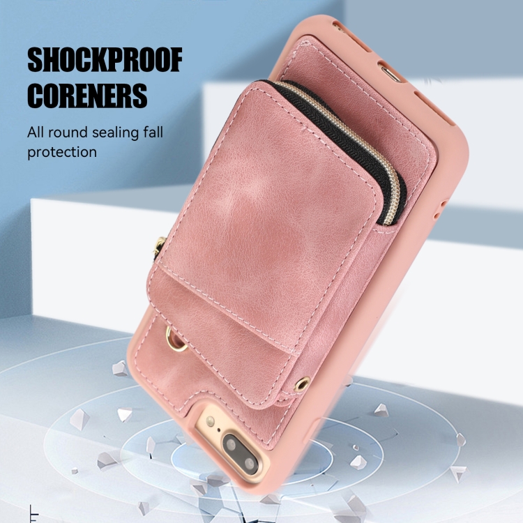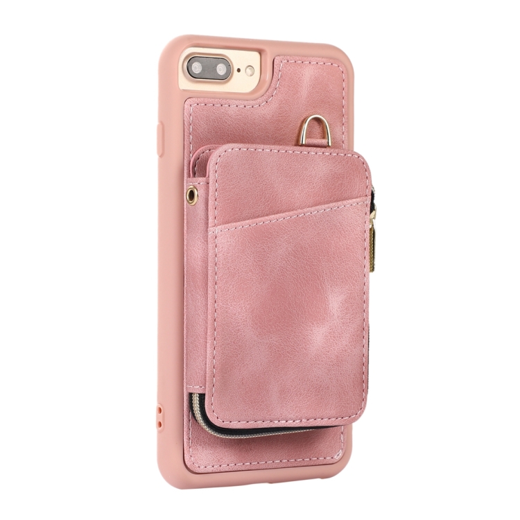 Funda para iPhone 8 Plus y 7 Plus con Cremallera para Tarjeta con Tapa Trasera (Rosa)