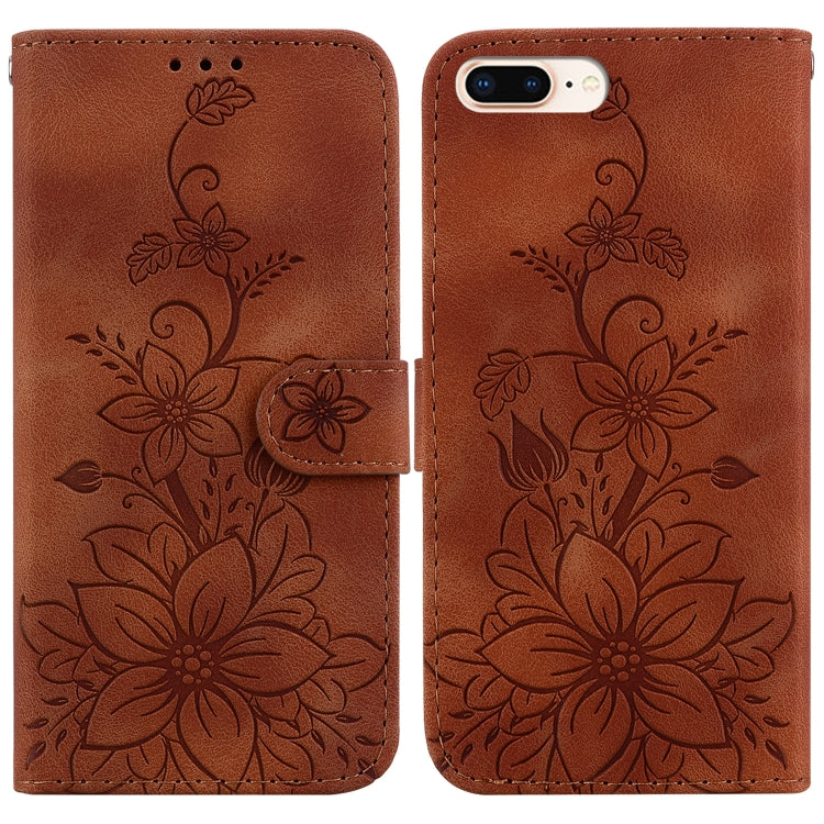 Funda para iPhone 8 Plus/7 Plus Cuero con Relieve Lily (Marrón)