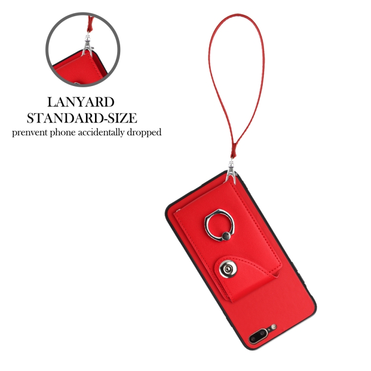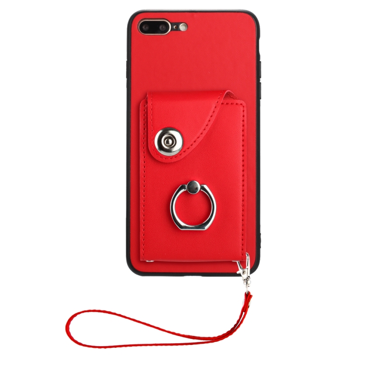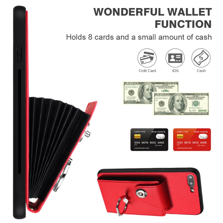Funda para Teléfono iPhone 8 Plus 7 Plus de PU con Soporte para Anillo Bolsa para Tarjeta y Cordón (Rojo)