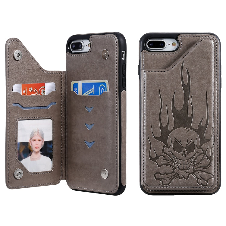 Funda Protectora iPhone 8 Plus 7 Plus a Prueba de Golpes con Estampado Calavera Soporte Ranuras Tarjetas Billetera (Gris)