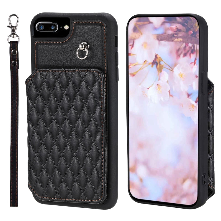 Funda para Teléfono iPhone 8 Plus 7 Plus Grid Texture Card Bag con Cordón (Negro)