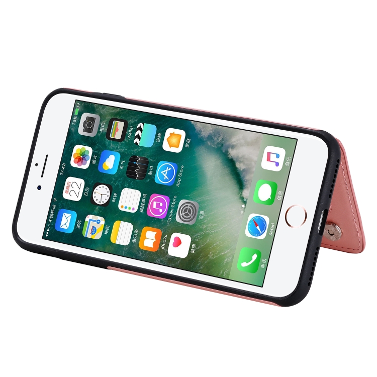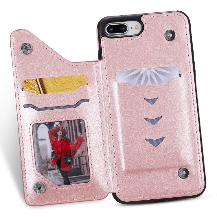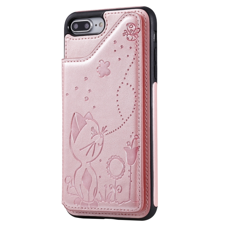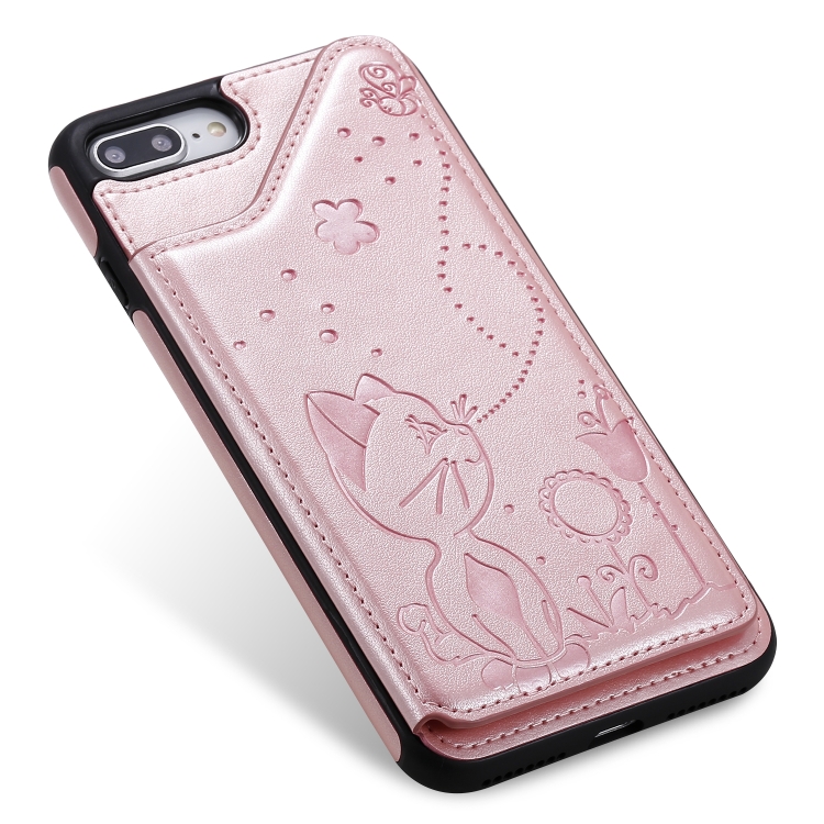 Estuche protector para iPhone 8 Plus y 7 Plus con patrón de abeja y gato, ranuras para tarjetas y marco de fotos (Oro Rosa)