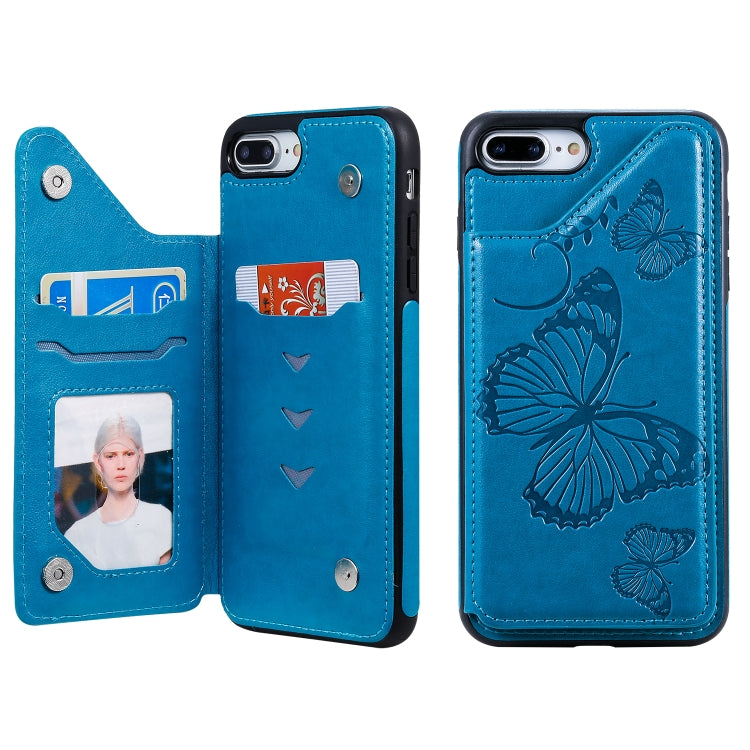 Funda Protectora para iPhone 8 Plus y 7 Plus Patrón Mariposa con Soporte, Ranuras para Tarjetas y Marco de Fotos (Azul)