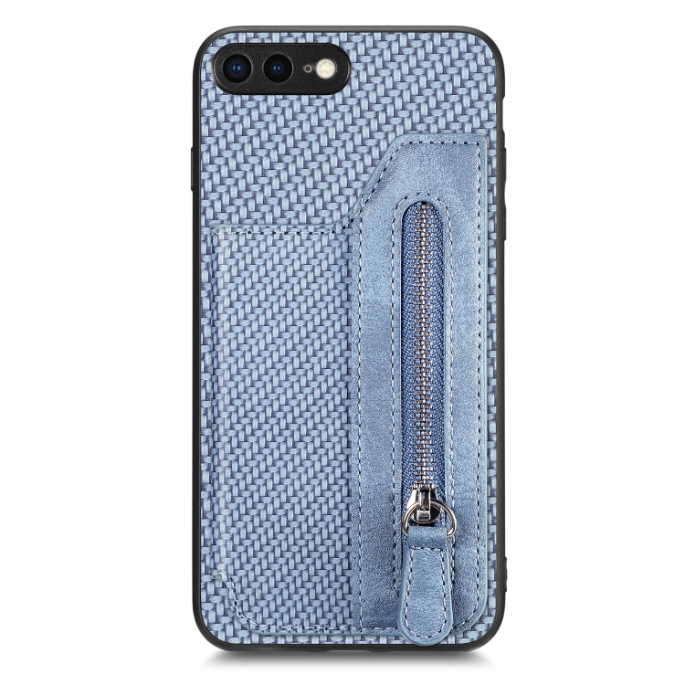 Estuche para Teléfono iPhone SE 2022 / 2020 / 7 / 8 con Billetera y Cremallera Horizontal de Fibra de Carbono (Azul)