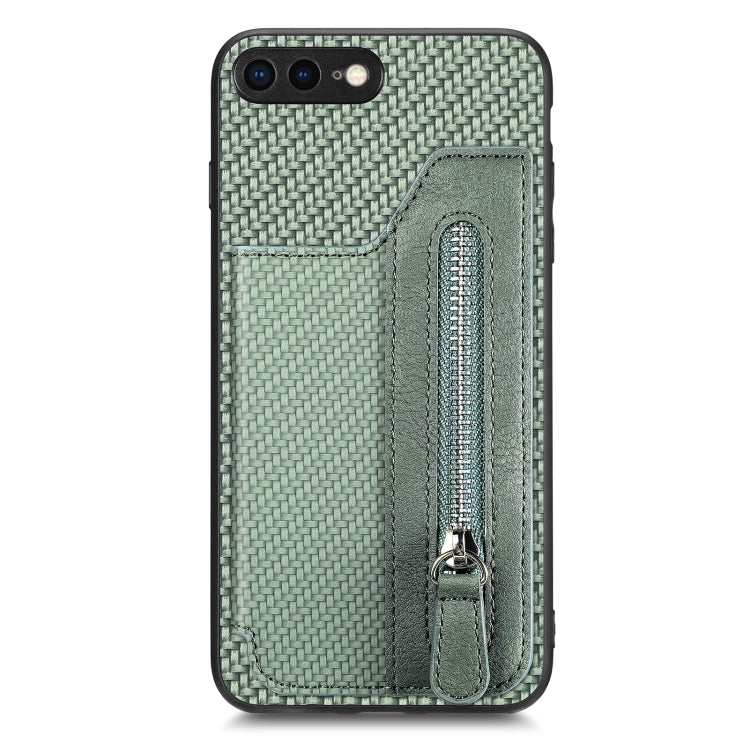 Estuche para Teléfono iPhone SE 2022/2020/7/8 con Billetera Cremallera Horizontal Fibra de Carbono (Verde)