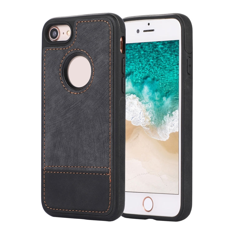 Funda para iPhone SE 2022/2020/8/7 Empalme Costura Caja de Teléfono de PU con Recorte (Negro)