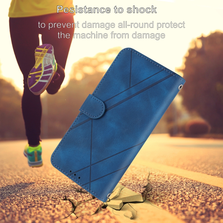 Funda de Cuero para iPhone 16E con Línea en Relieve y Cordón (Azul)