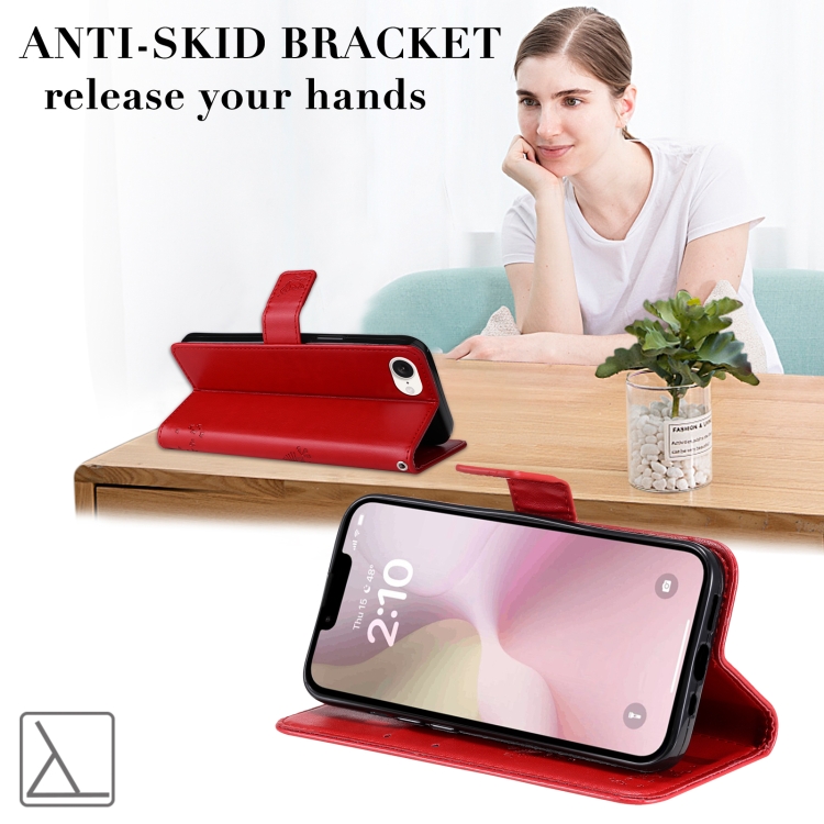 Funda de Cuero con Tapa para iPhone 16E Diseño Árbol y Gato En Relieve (Rojo)