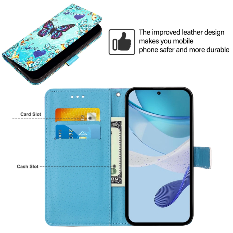Funda de Cuero para iPhone 16E con Patrón de Mariposa Cariñosa
